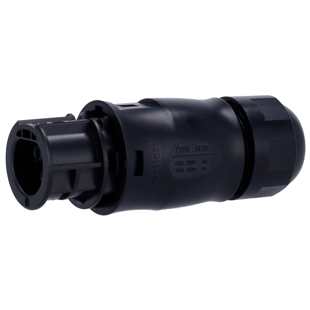 Este conector permite realizar instalaciones de microinversores en cadena de forma segura y eficiente, además de permitir la conexión de cables AC para llevarlas a cuadro eléctrico.