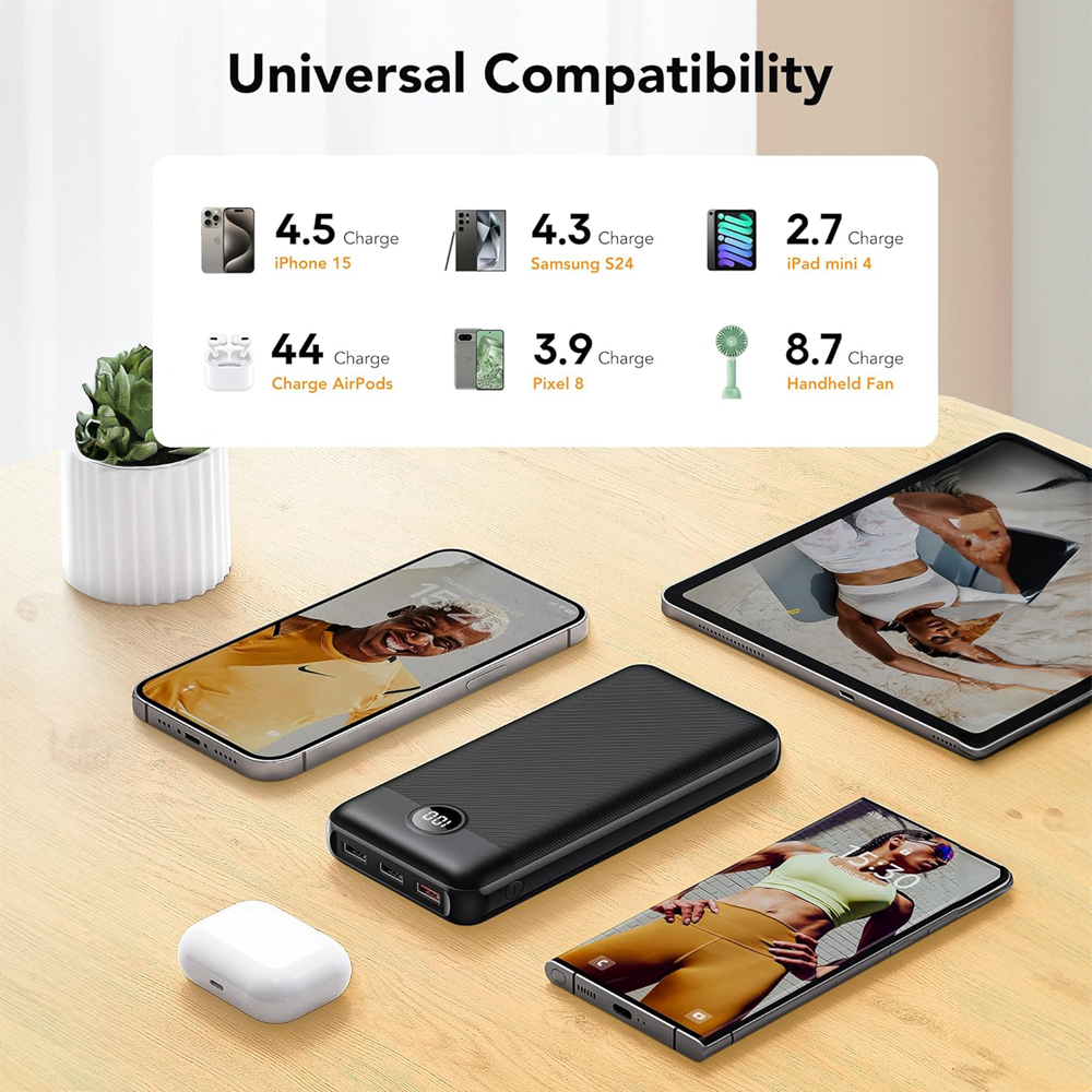 Es ideal para viajes largos, jornadas intensivas o uso profesional, donde es necesario energía durante todo el día. También resulta muy útil en exteriores o situaciones sin acceso a enchufes (camping, obras), ya que su gran capacidad permite mantener varios dispositivos cargados durante más tiempo sin depender de la red eléctrica.