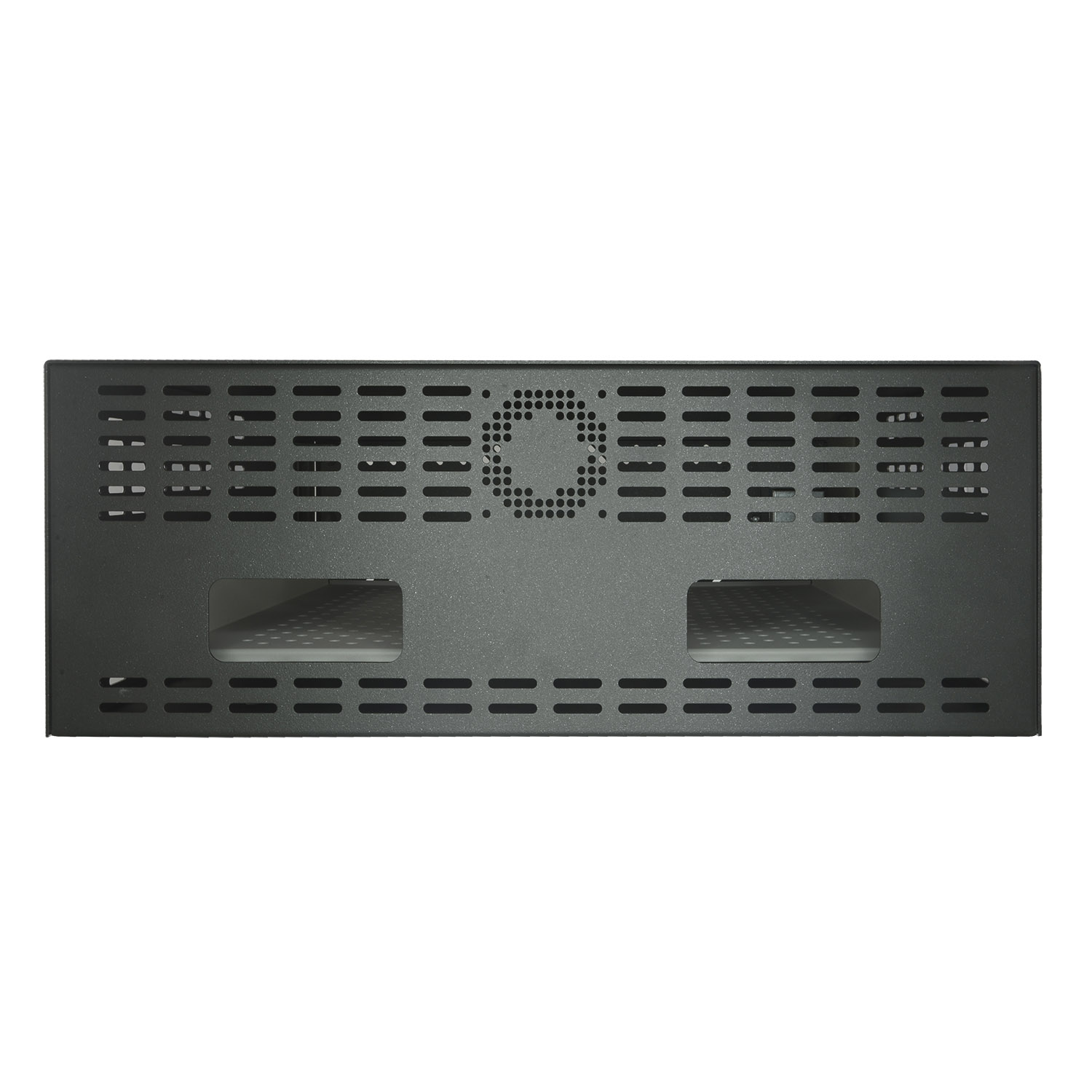 La caja fuerte VR-120E está especialmente concebida para proteger videograbadores cuyo tamaño no exceda 1,5/2U rack. Consiste en una caja de acero de 2 mm de espesor con puerta y marco de acero de 4 mm, dotada de rejillas de ventilación distribuídas por toda la caja, de ventanas posteriores para el cableado y de diversos taladros para anclar la caja fuerte. Presenta un acabado en pintura epoxi-poliéster polimerizada a 180 ºC muy resistente.