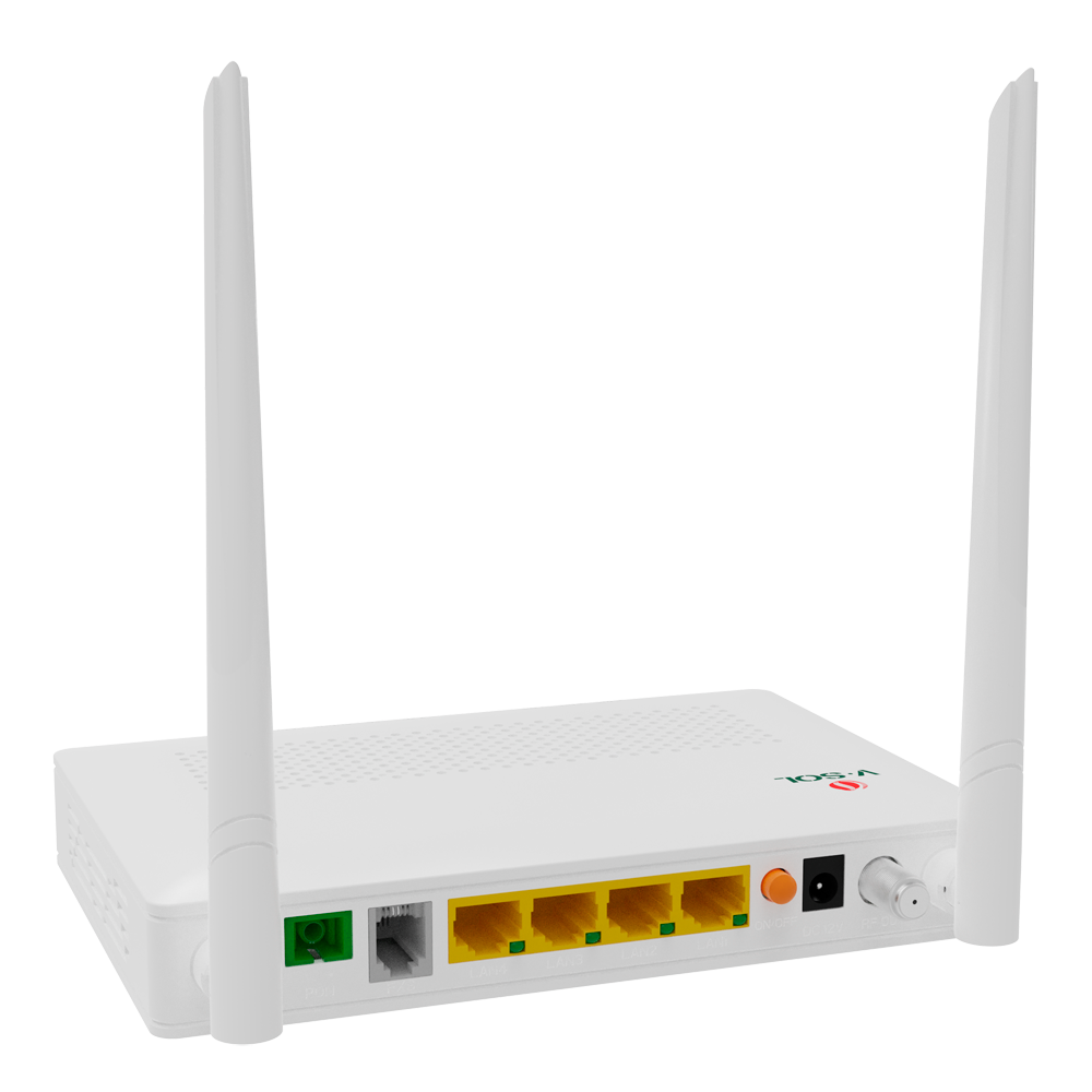 - 1X PON 4xLAN RJ45 10/100/1000 Mbps 1x RJ11 1x CATV