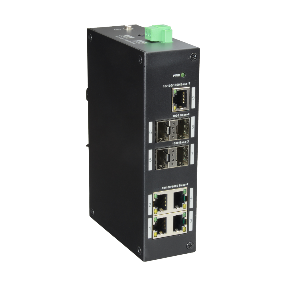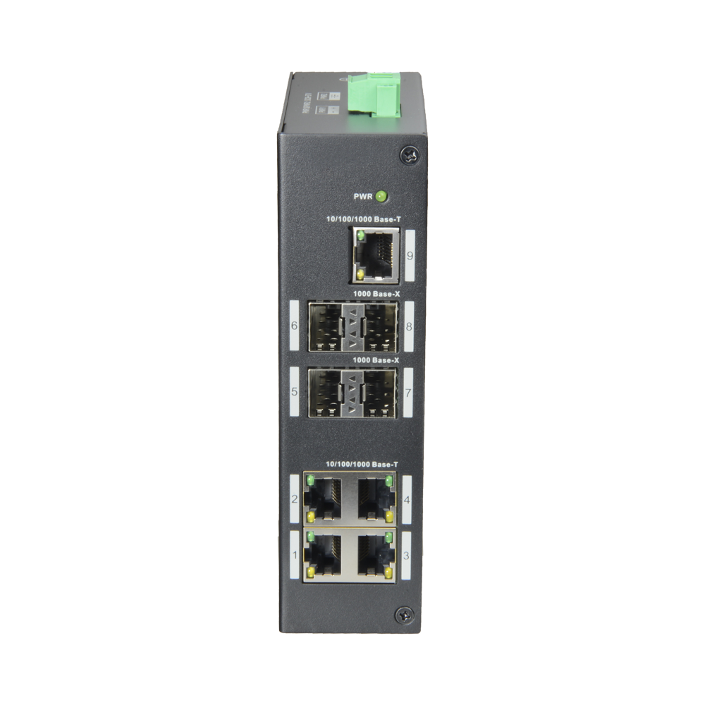 Su construcción “Hardened” garantiza la continuidad del servicio en condiciones críticas. La carcasa metálica disipa el calor de forma pasiva, eliminando ventiladores y puntos de fallo mecánicos, mientras que el soporte para doble alimentación redundante asegura que la red permanezca operativa incluso ante el fallo de una fuente de energía. Es la solución definitiva para centros de control, plantas de energía o grandes perímetros donde se requiere una alta capacidad de conmutación Gigabit y una fiabilidad inquebrantable en un espacio optimizado para carril DIN.