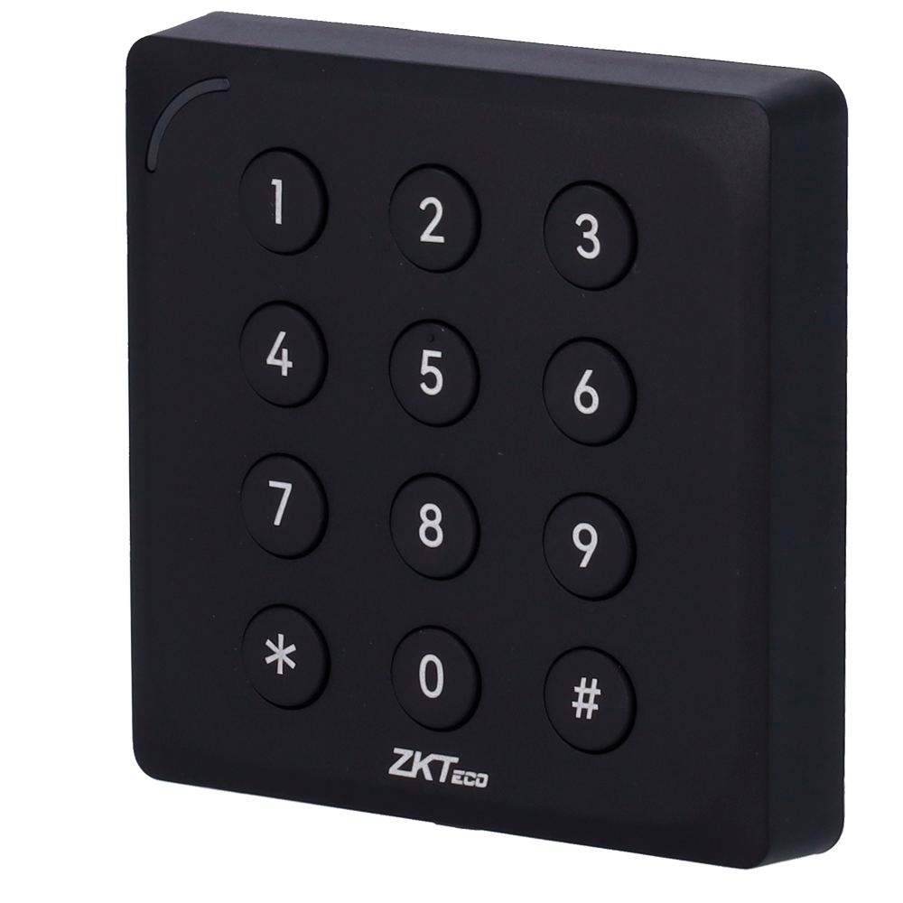 Este lector permite la identificación a través de tarjetas o llaveros con tecnología RFID EM de 125 kHz, MF de 13.56 MHz y MF DESFire de 13.56 MHz, así como teclado para códigos numéricos.