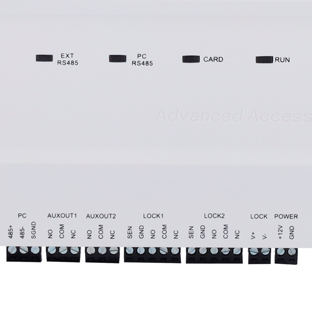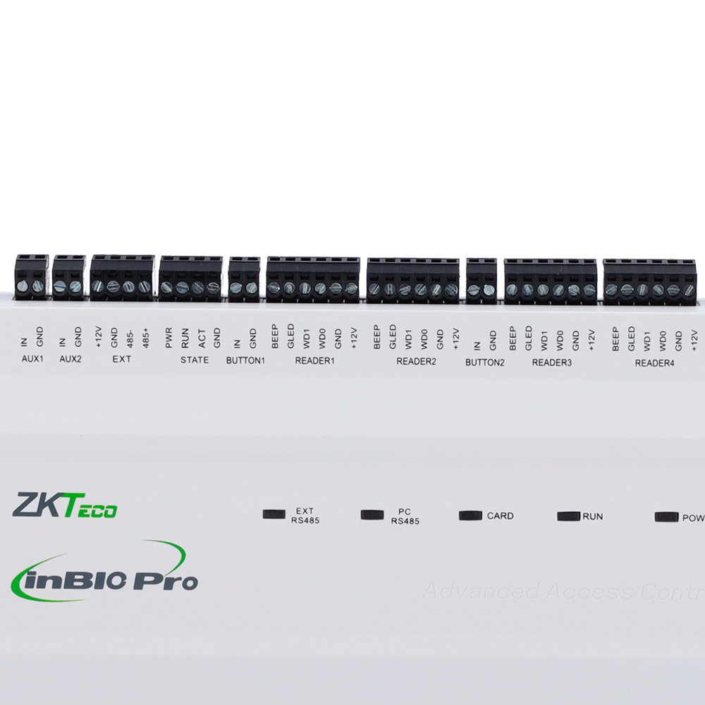 Esta controladora soporta lectores basados en el protocolo Wiegand, que permite la conexión a través de un cableado directo de cada lector a la controladora. Cuenta con 4 lectores para realizar entrada y salida en cada puerta y soporta lectores biométricos, que se conectan a través de RS485 y permiten la conexión a través de BUS (en cascada). Al soportar RS485, también soporta OSDP en el mismo conector, siendo este último personalizable en la configuración y permitiendo hasta 4 lectores por este método.