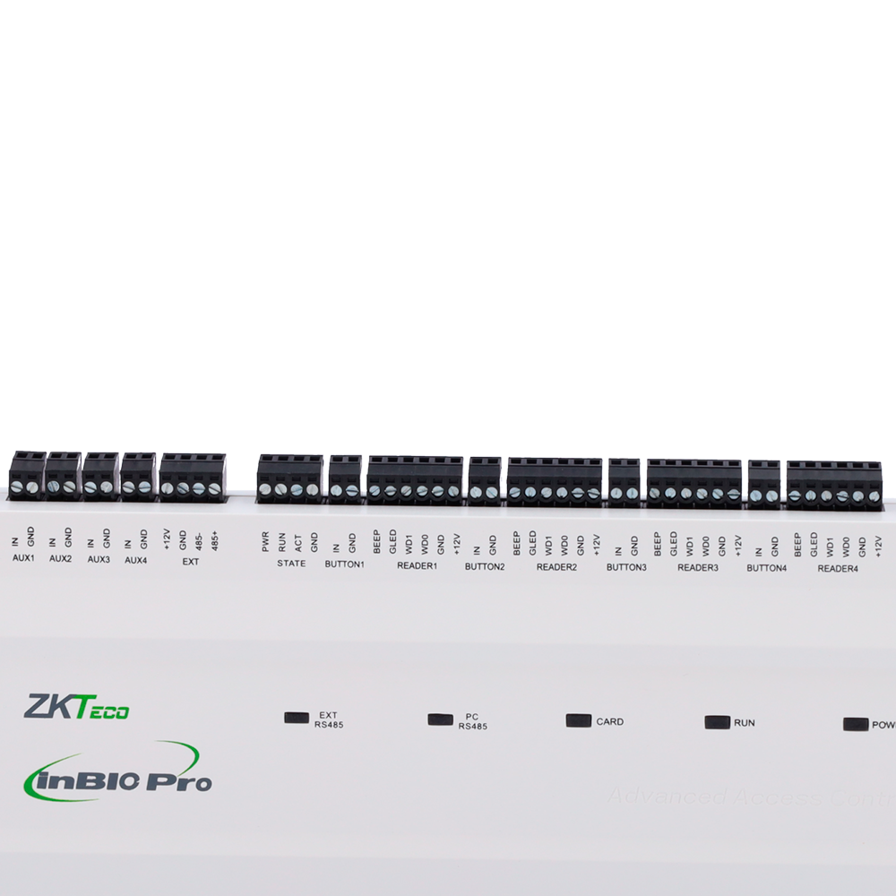 Esta controladora soporta lectores basados en el protocolo Wiegand, que permite la conexión a través de un cableado directo de cada lector a la controladora. Cuenta con 4 lectores para realizar entrada y salida en cada puerta y soporta lectores biométricos, que se conectan a través de RS485 y permiten la conexión a través de BUS (en cascada). Al soportar RS485, también soporta OSDP en el mismo conector, siendo este último personalizable en la configuración y permitiendo hasta 8 lectores por este método.