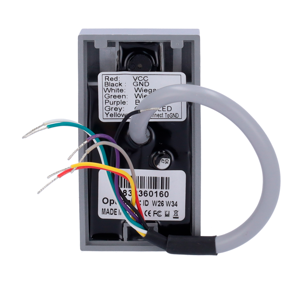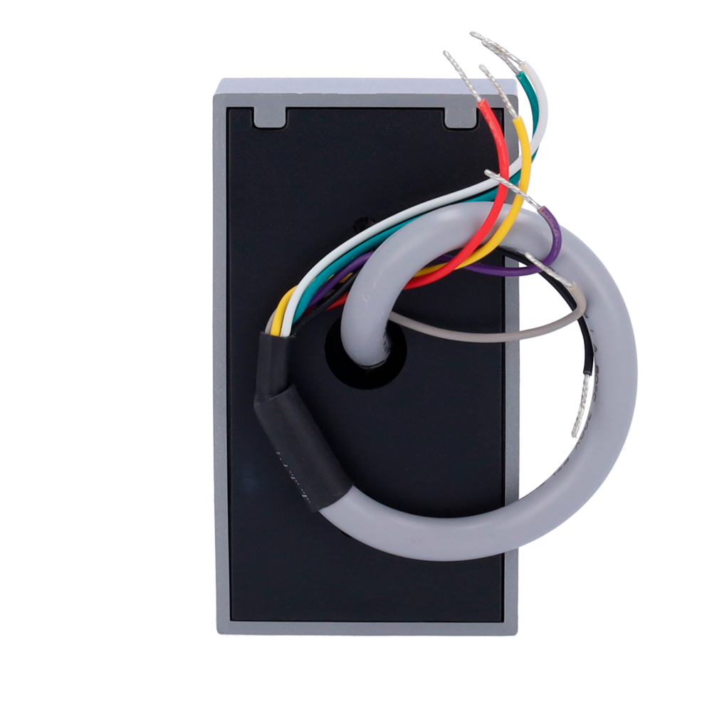 Este lector permite la identificación a través de tarjetas o llaveros con tecnología RFID EM de 125 kHz.